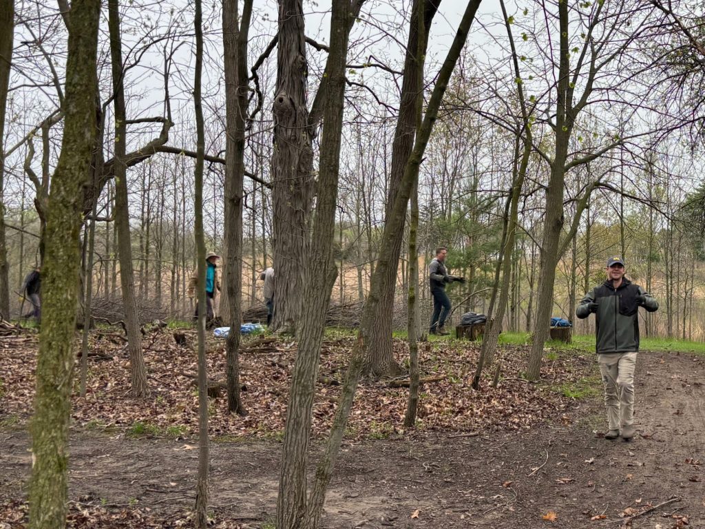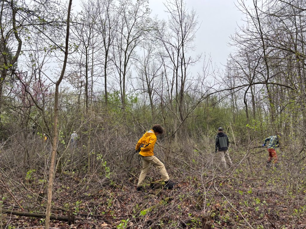 South of the pond, invasive buckthorn has taken over much of the natural area. But young ash, oak, and maple are starting to come back, and a stand of decades-old Scotch pines still holds its ground. This March, thanks to generous donations, Friends of Greenview hired an environmental consultant and got to work. The crew spent two days girdling buckthorn and treating cut sites to prevent regrowth. Over time this will give native plants room to return and create richer habitat for birds and wildlife. It will also open the door for Friends of Greenview to plant native seeds and shrubs in the future.